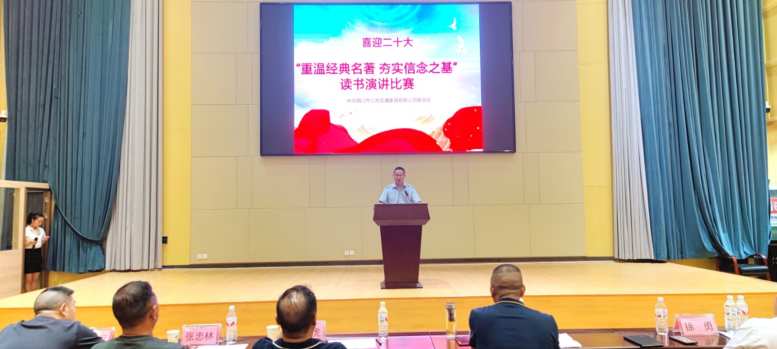 ? ? 在“重溫經(jīng)典名著 夯實(shí)信念之基”讀書(shū)比賽環(huán)節(jié),公交集團(tuán)公司8個(gè)基層黨支部選送的選手,通過(guò)抽簽確定了比賽順序,分別作了激情滿(mǎn)懷,聲情并茂的讀書(shū)比賽。整場(chǎng)比賽一是主題突出。圍繞“重溫經(jīng)典名著 夯實(shí)信念之基”主題,緊扣紅色主題,抒發(fā)了對(duì)黨的忠誠(chéng)熱愛(ài)、對(duì)祖國(guó)的無(wú)限深情,對(duì)紅色經(jīng)典讀書(shū)學(xué)習(xí)渴求。二是氛圍濃厚。各位選手精神飽滿(mǎn)、激情滿(mǎn)懷。三是效果明顯。參賽選手發(fā)自?xún)?nèi)心的深情朗誦,引起了現(xiàn)場(chǎng)觀眾的共鳴,掌聲陣陣響起為選手們喝彩鼓勁。
