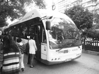 昨日,記者來(lái)到卓刀泉南路方家嘴公交車(chē)站,這里是596路的起點(diǎn)站。15分鐘后,一輛漂亮的新能源白色公交車(chē)開(kāi)進(jìn)了站點(diǎn)(如右圖)。這輛公交車(chē)外觀(guān)和普通公交明顯不同,車(chē)身以白色為主,前車(chē)窗占整個(gè)車(chē)頭前面的一半,車(chē)廂兩側(cè)的車(chē)窗也占車(chē)身高度的一半,從外觀(guān)上看,比普通公交車(chē)要大得多。