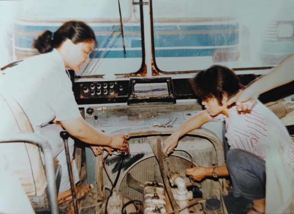 ▲80年代,車(chē)間修理工檢修模樣。手上拿著自制試燈(試電筆)檢測(cè)著車(chē)輛線路,臉上洋溢著那個(gè)年代的笑容,是樸實(shí)、是堅(jiān)毅。女性修理工可不多見(jiàn)。