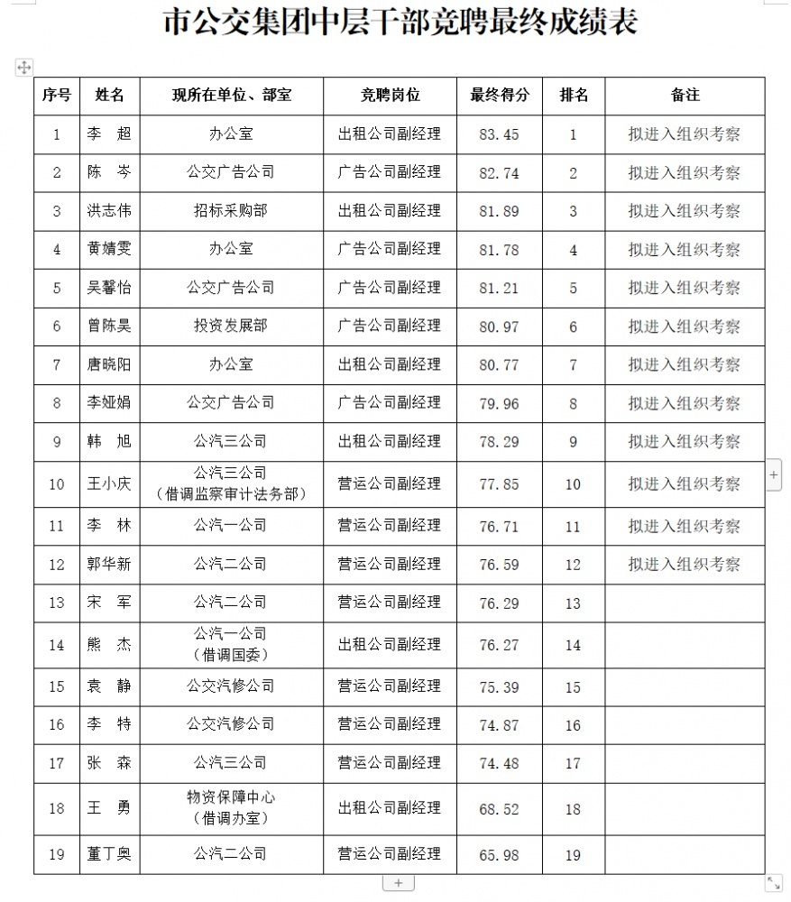 附件:市公交集團(tuán)中層干部競(jìng)聘最終成績(jī)表