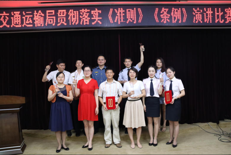 5月22日,市交通運(yùn)輸局舉辦貫徹落實(shí)《準(zhǔn)則》《條例》主題演講比賽,市交通運(yùn)輸局機(jī)關(guān)及直屬單位11名黨員代表參加了比賽。局黨組成員、局機(jī)關(guān)全體干部,局直單位主要負(fù)責(zé)人、分管負(fù)責(zé)人、監(jiān)察室主任、黨務(wù)工作者、支部書記等100余人現(xiàn)場(chǎng)觀看了比賽。