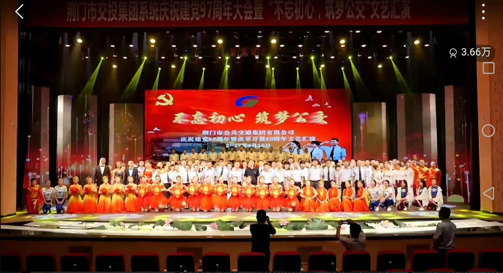 6月26日,市公共交通集團(tuán)有限公司在荊門劇院舉行慶祝建黨97周年表彰大會(huì)暨“不忘初心,筑夢(mèng)公交”文藝演出,來(lái)自11個(gè)基層單位員工獻(xiàn)出了一場(chǎng)炫目多彩的紅色文化視聽盛宴。