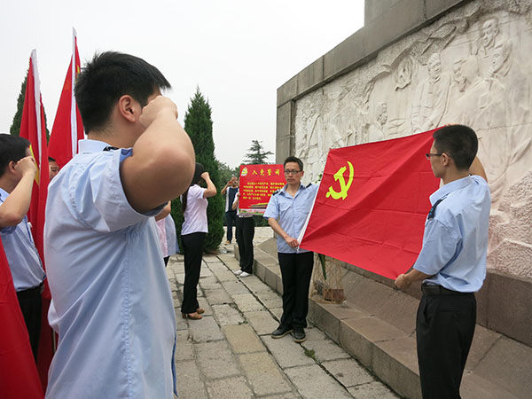登山比賽結(jié)束,集團(tuán)公司黨委組織全體黨員在烈士陵園的革命烈士紀(jì)念碑下肅立,舉行莊重的入黨宣誓。在齊唱《中華人民共和國國歌》之后,今年剛轉(zhuǎn)正的黨員周小艷、孟津平、劉斌、何俊、董丁奧5名同志,以及王雄峰、江志剛、陳荊梅3名預(yù)備黨員,舉行了入黨宣誓。隨后新黨員代表王雄峰同志代表全體黨員發(fā)言。接著,公司黨委副書記、紀(jì)檢書記文勁同志代表黨委致辭。最后,公司黨委書記龐守江為本次慶七.一登山比賽獲得名次的同志頒發(fā)了獎品,并要求全體黨員要牢記入黨誓詞,踐行黨員義務(wù),以黨員的標(biāo)準(zhǔn)嚴(yán)格要求自己,充分發(fā)揮黨員的先鋒模范作用, 為實現(xiàn)荊門公交跨越發(fā)展和中華民族的偉大復(fù)興貢獻(xiàn)自己的力量,無愧于中國共產(chǎn)黨員的光榮稱號!