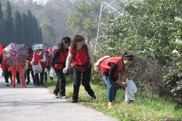 3月7日,“慶三八”組織女工到東寶山義務(wù)撿拾垃圾活動(dòng)